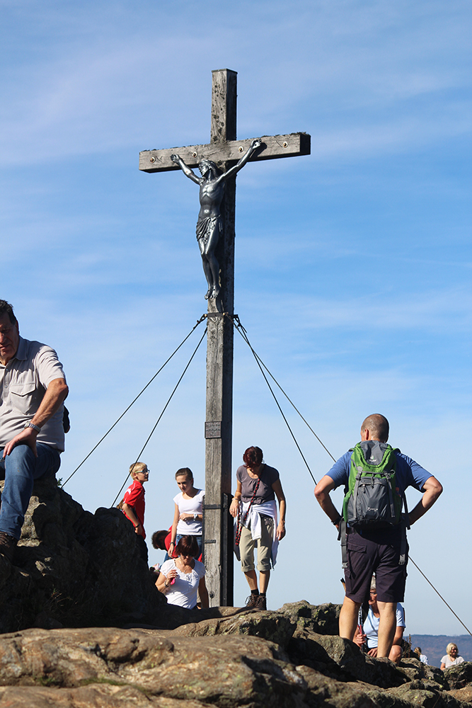 sind der Kreuzfelsen (999 m) mit Gipfelkreuz und die Rauchröhren (1044 m).